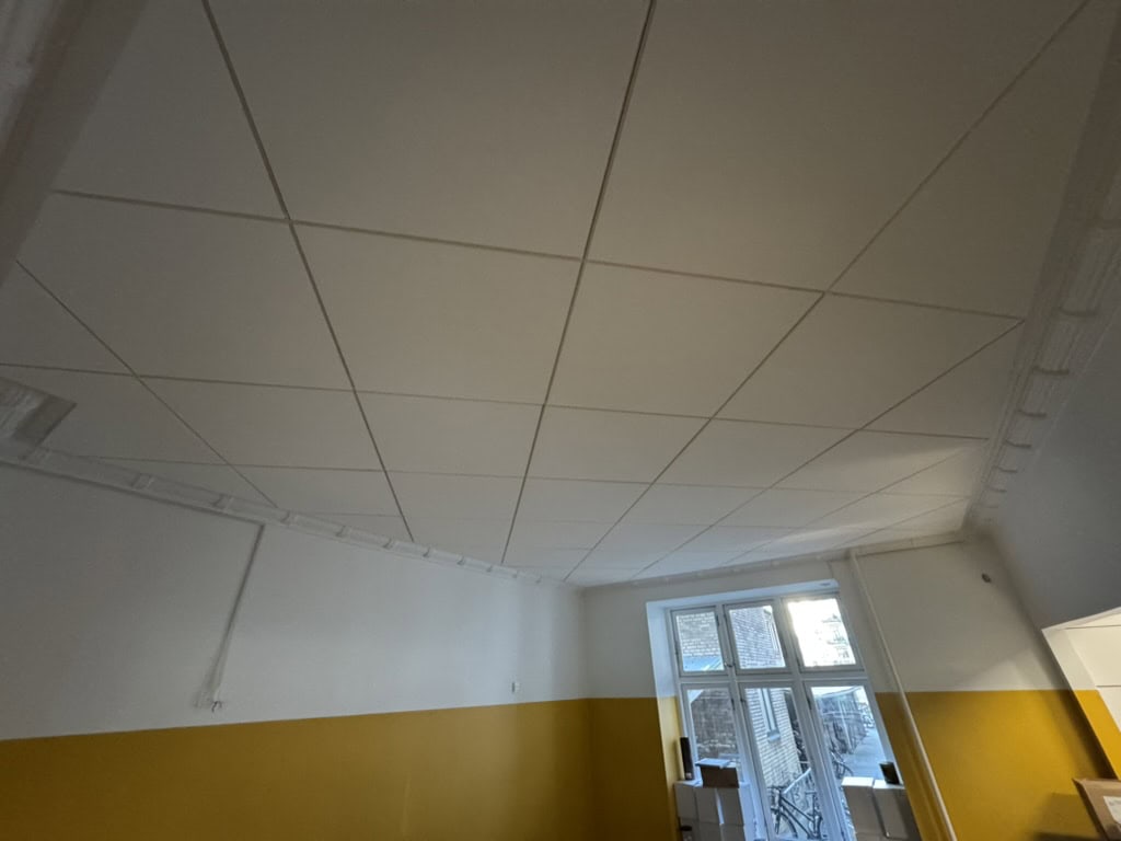 Selvom disse plader har synlige kanter, så gør b-kanten som er facet, at man nærmest ikke bemærker overgangene. Loftet er super eQektivt, klasse A, hvor op til 95 % af støjen/rumklangen kan opfanges af loftet.